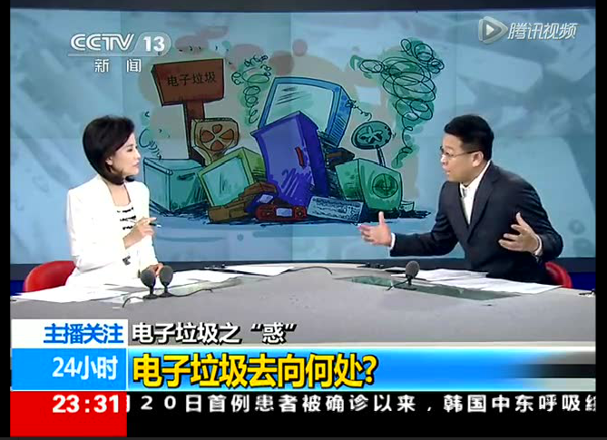 2015年6月21日,中央電視臺(tái)新聞?lì)l道播出“電子垃圾去向何處”的采訪報(bào)道,就電子垃圾的現(xiàn)狀危害及正確的處理方式,華新環(huán)保總經(jīng)理王建明及子公司香蕉皮副總經(jīng)理肖賢飛等,接受了采訪。