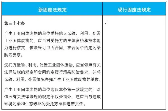4.新增了委托他人運輸、利用、處置工業(yè)固廢的,應(yīng)對受托方進(jìn)行審查,否則承擔(dān)連帶責(zé)任的要求