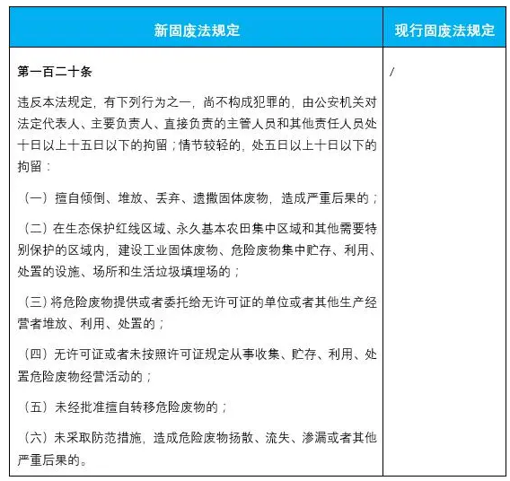 新固廢法對法律責(zé)任專章進(jìn)行了擴(kuò)充完善,加大了對固廢管理不合規(guī)的處罰力度,增加了企業(yè)的違法成本。除了對新增內(nèi)容設(shè)定了相應(yīng)罰則外,還普遍提高了違法行為的處罰金額,最高可罰至500萬元,并且增加了按日連續(xù)處罰、行政拘留、查封扣押等執(zhí)法措施,這些嚴(yán)格的法律責(zé)任變化也值得企業(yè)的特別關(guān)注。