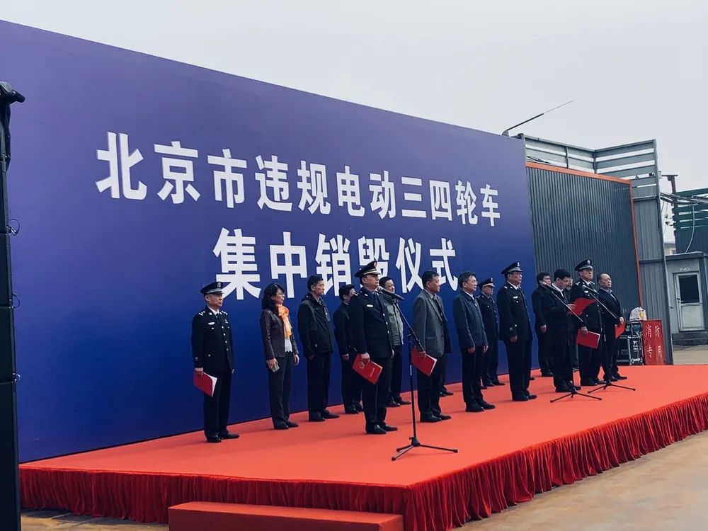 北京1569輛違規(guī)電動三四輪車在華新凱業(yè)現場被集中銷毀!