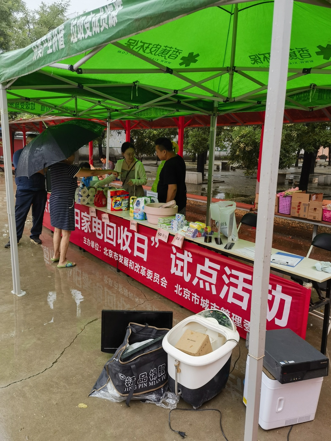 活動(dòng)現(xiàn)場(chǎng)安置帳篷及懸掛橫幅,此次懸掛宣傳橫幅不僅體現(xiàn)廢棄電器電子產(chǎn)品新型回收利用體系試點(diǎn)建設(shè)試點(diǎn),同時(shí)也向居民傳遞了公民的環(huán)保責(zé)任。